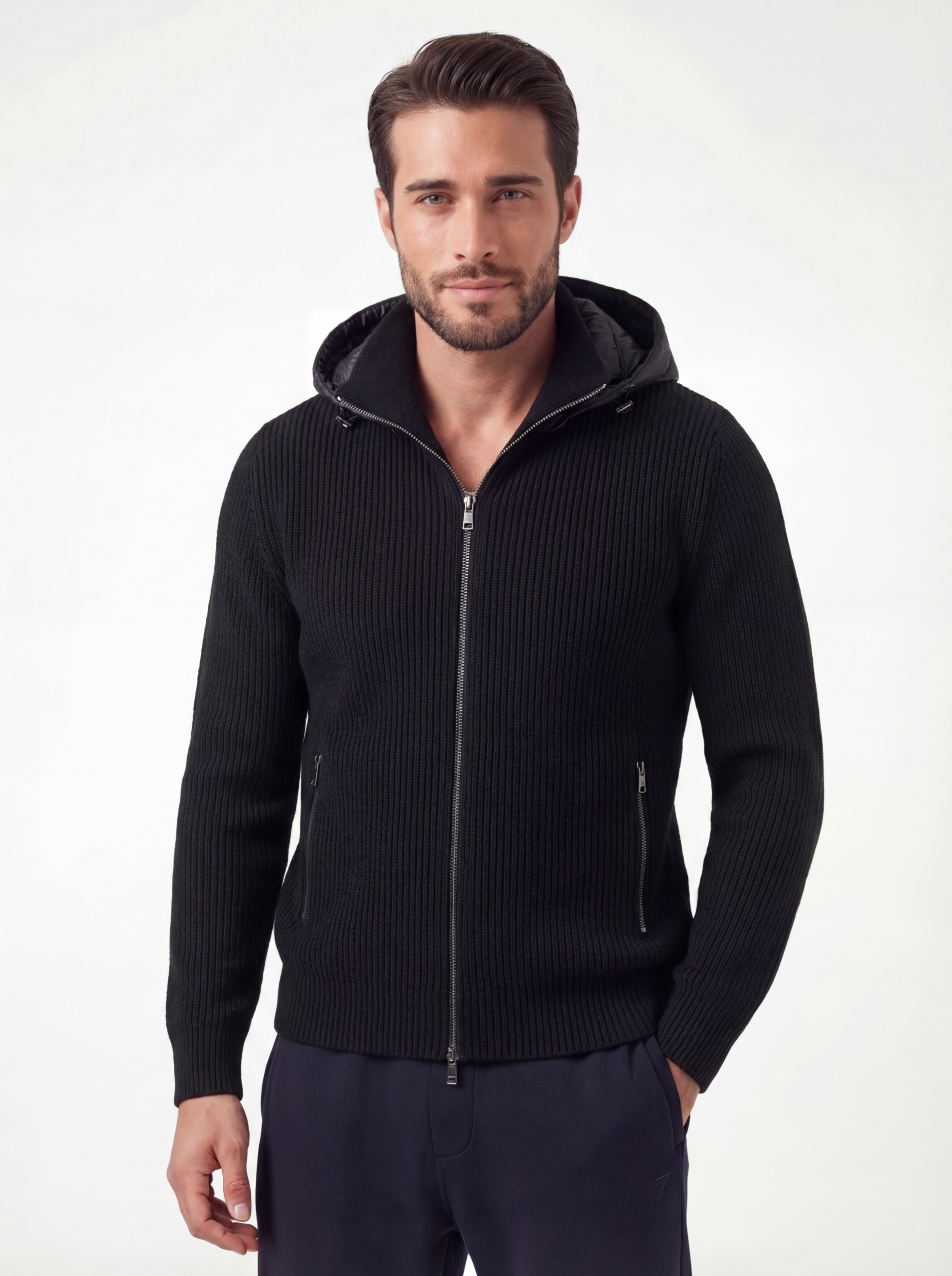 - Ribbed hem and cuffs
