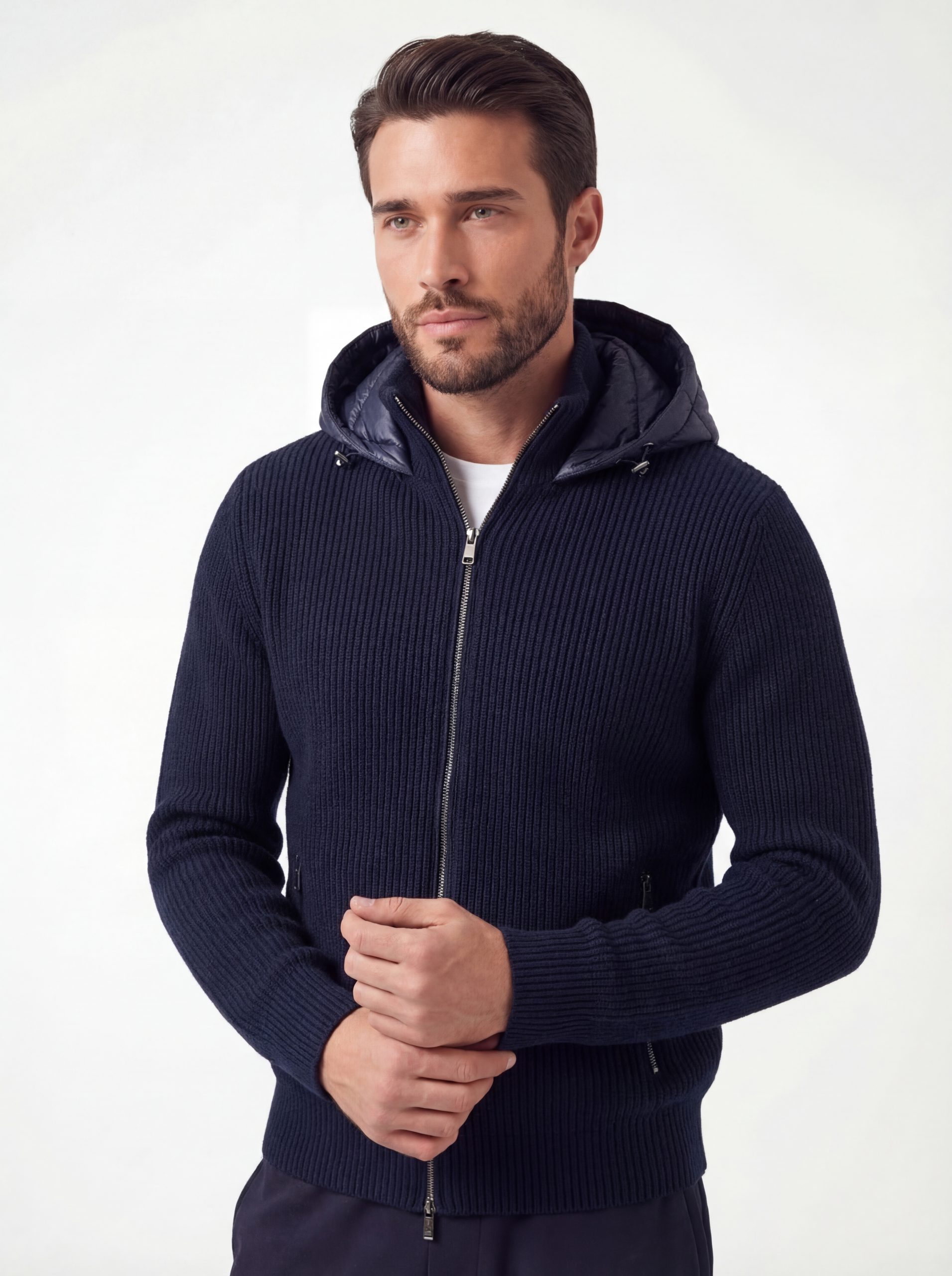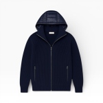 Most brands pick from a catalogue. We didn't. Twelve designs sketched, six physical samples built and worn, one version that made it through. A quilted nylon shell, wool-blend knit sleeves, detachable hood, custom hardware on every zip. Nothing left until it was right.